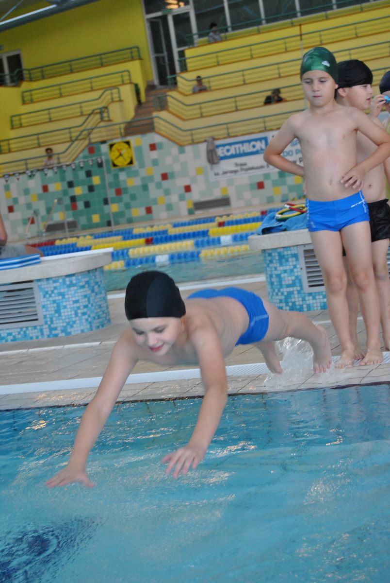 W sekcji pływania są trzy grupy: początkująca, średnia i zaawansowana.